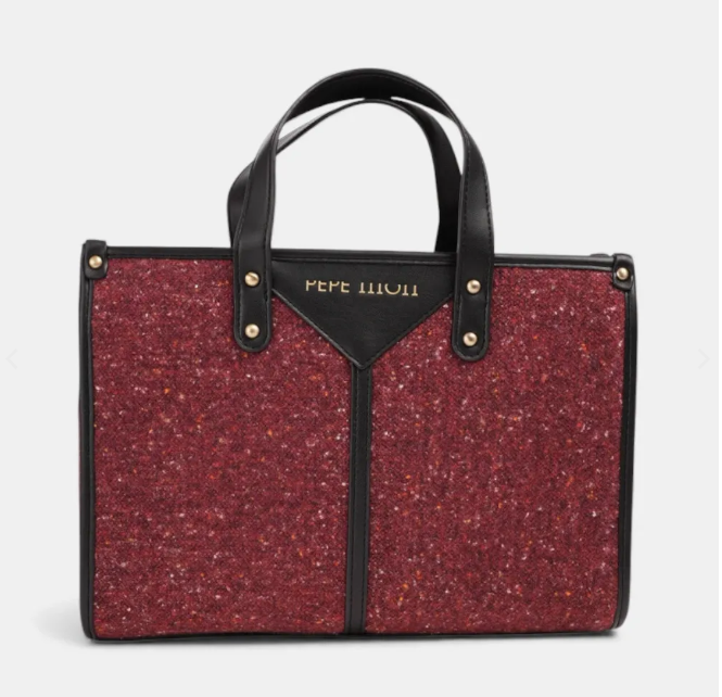 An elegant, office-ready tote in rich cherry tweed with smooth black trims. The Lili keeps its shape beautifully and carries comfortably by hand or on the shoulder thanks to the detachable strap.