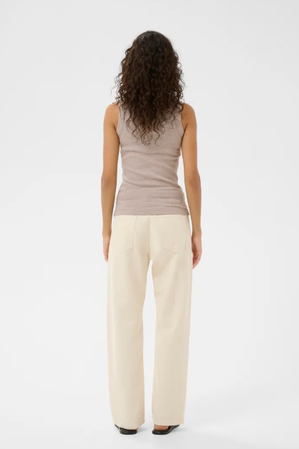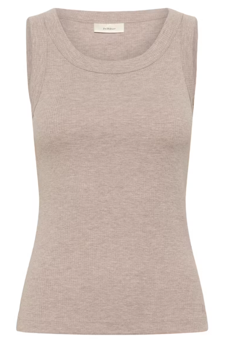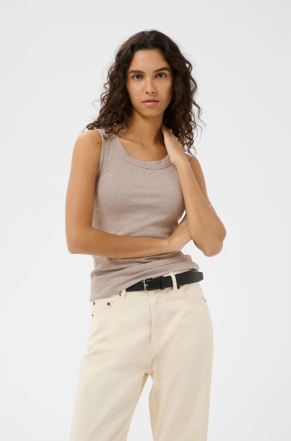 Ribbed tank top with a fitted silhouette, wide straps, and a classic round neckline. Soft, textured finish in a straight, hip-length cut for effortless style.