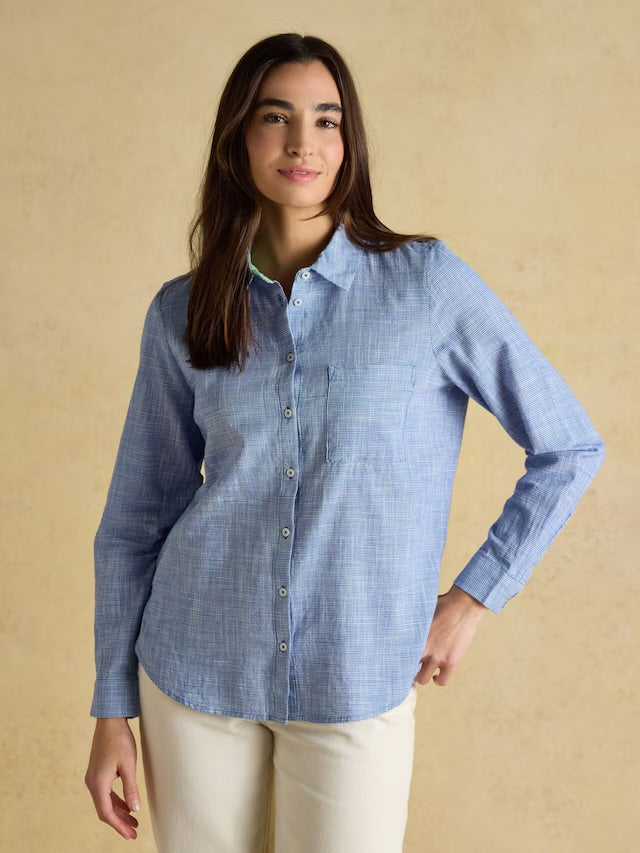 Joules Women’s Ida Puppytooth Long Sleeve Cotton Shirt - Blue