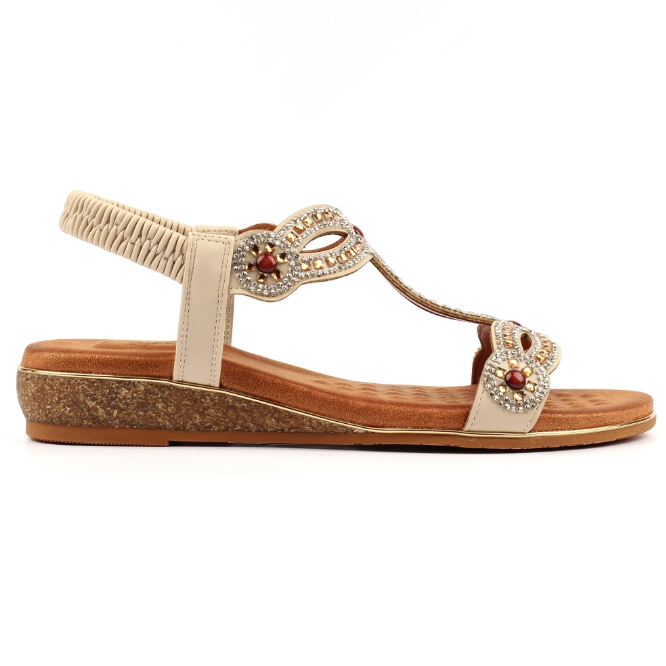 Lunar Ladies Sandals JLH616BG Indigo Beige Wide Fit Sandal