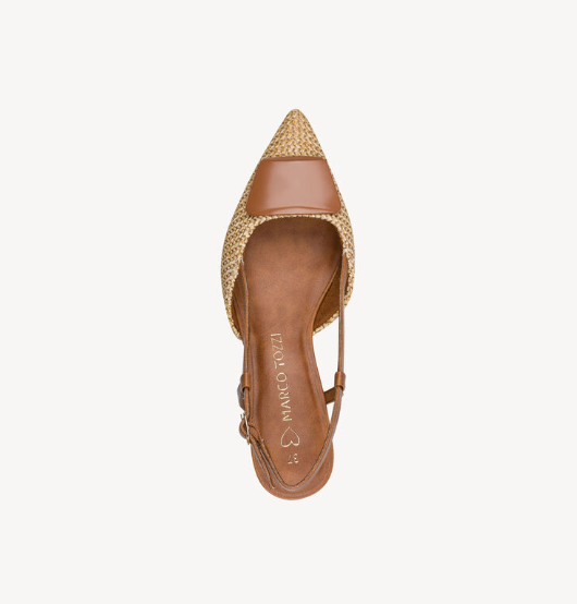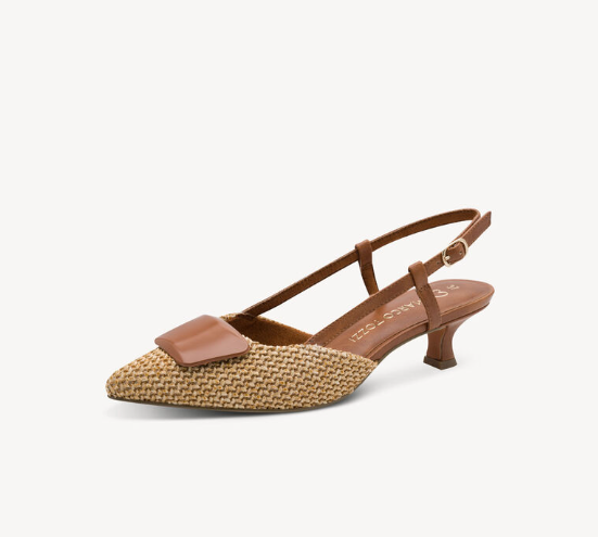 Marco Tozzi Ladies Sling Back Kitten Heel Sandal 29503-44 Cognac Combination
