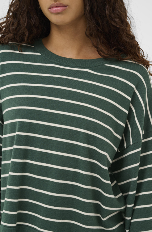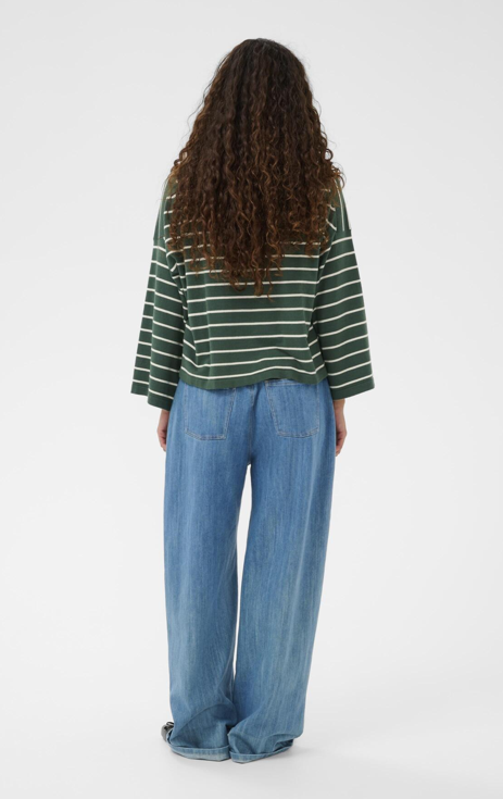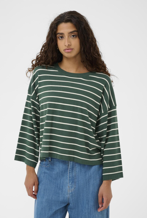 Soaked in Luxury Ladies SLSpina Boxy Pullover Cropped in Trekking Green White Stripe, Spina