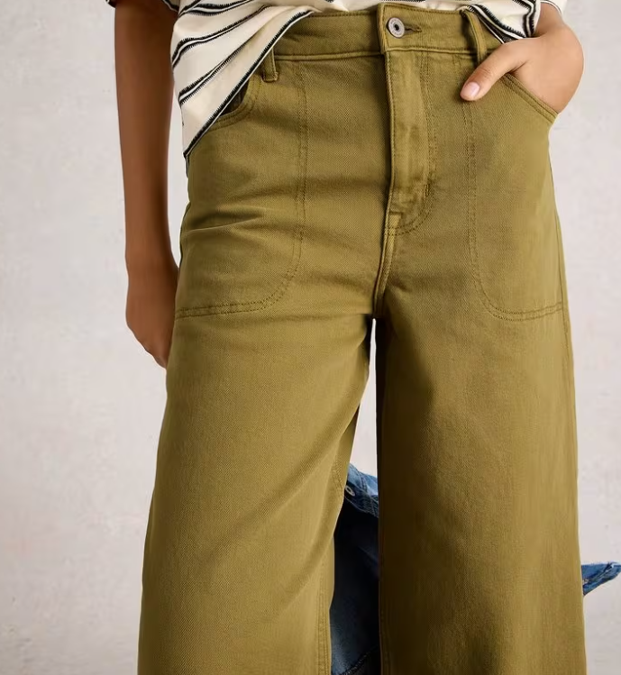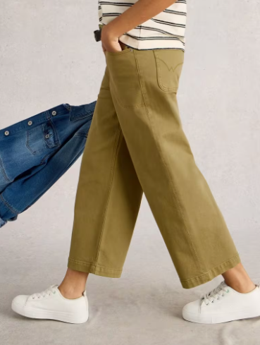 White Stuff Ladies Tia Wide Leg Crop Jeans in Khaki GRN