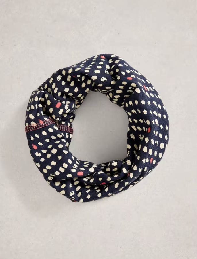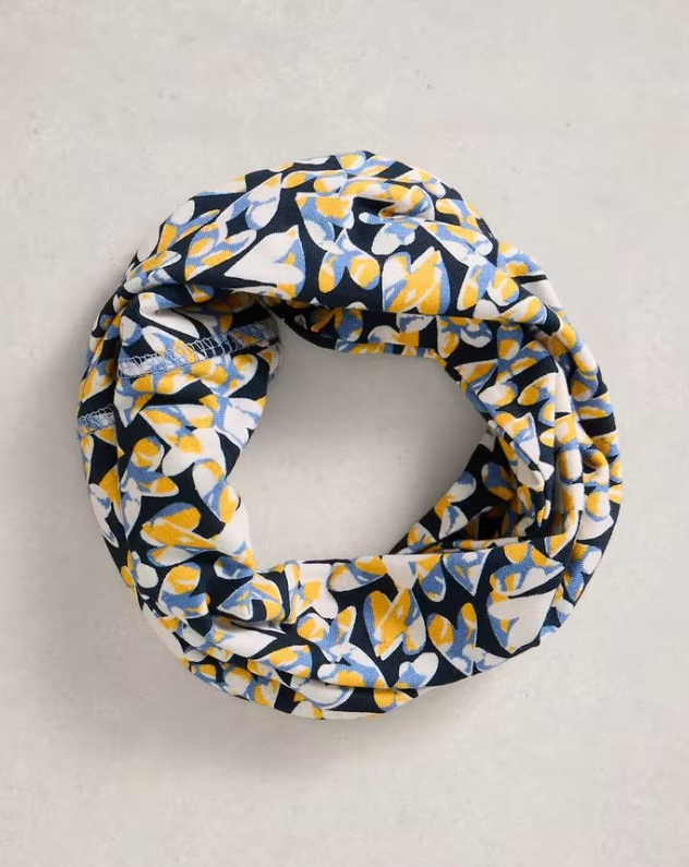 White Stuff Ladies Versatile Neck Jersey Roll In chart Pr, Coral Mlt and Navy Pr