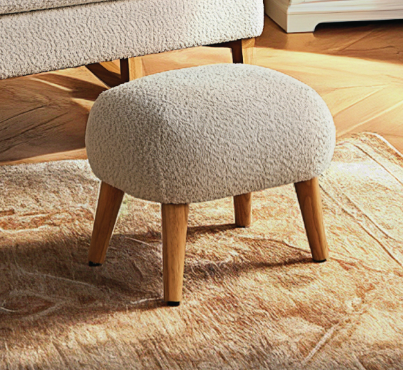 The Etta Foot Stool in Boucle Mushroom adds comfort and warmth to your feeding space.