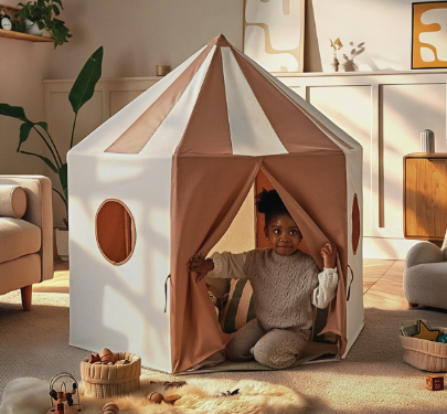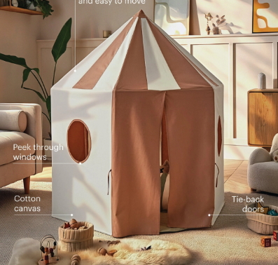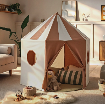 Whether it becomes a cosy reading nook, a woodland den or the setting for their next adventure, the Pavilion Play Tent encourages hands-on, screen-free play that nurtures creativity and confidence. Finished in a warm Tuscany shade and designed to sit comfortably within family spaces, it offers a calm, inviting place for play that feels both playful and considered. Lightweight and easy to fold away, it fits seamlessly into everyday family life.