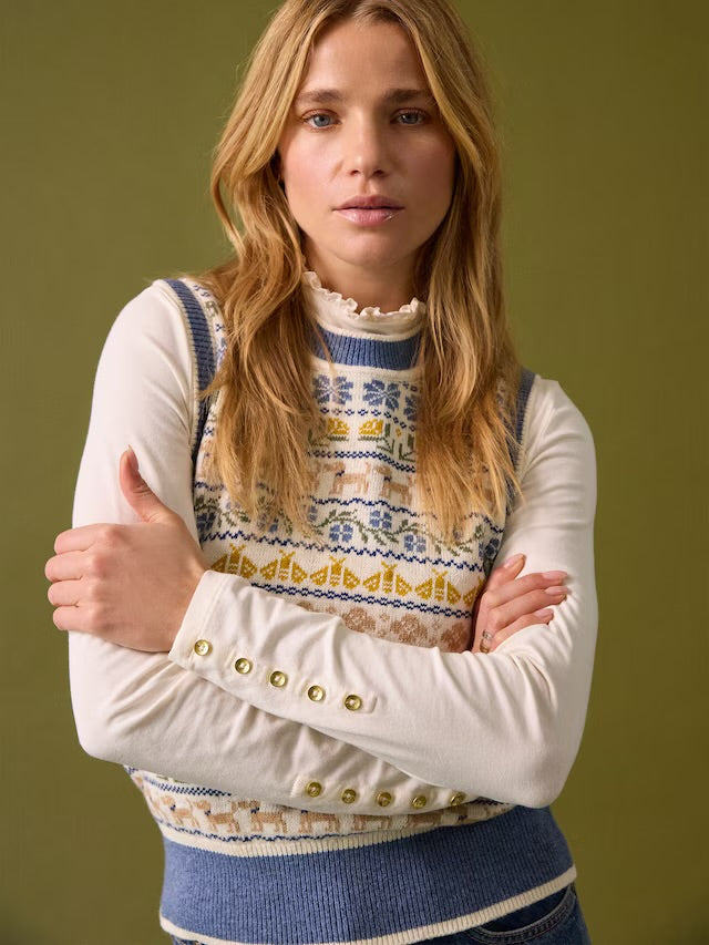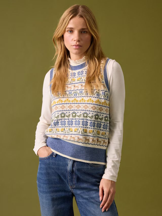 Joules Women’s Birds & Bees Knitted Crew Neck Vest - Cream/Blue