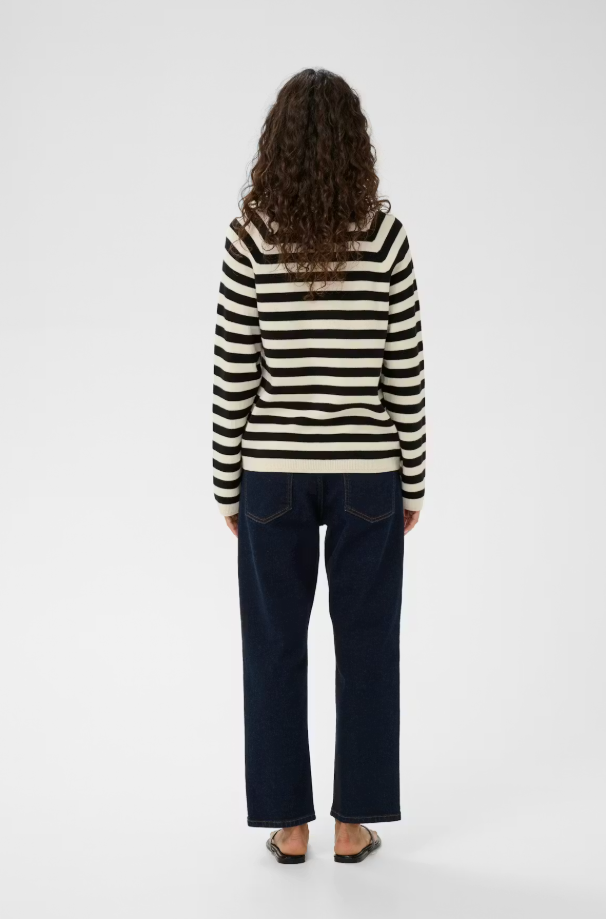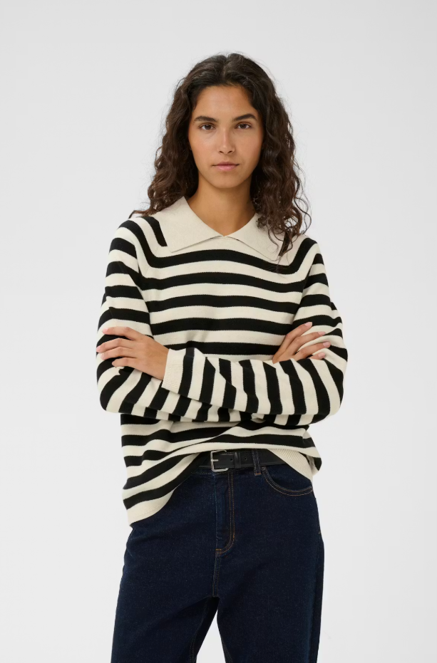 Inwear Ladies MADIEIW Polo Pullover In BLACK / WHISPER WHITE STRIPE