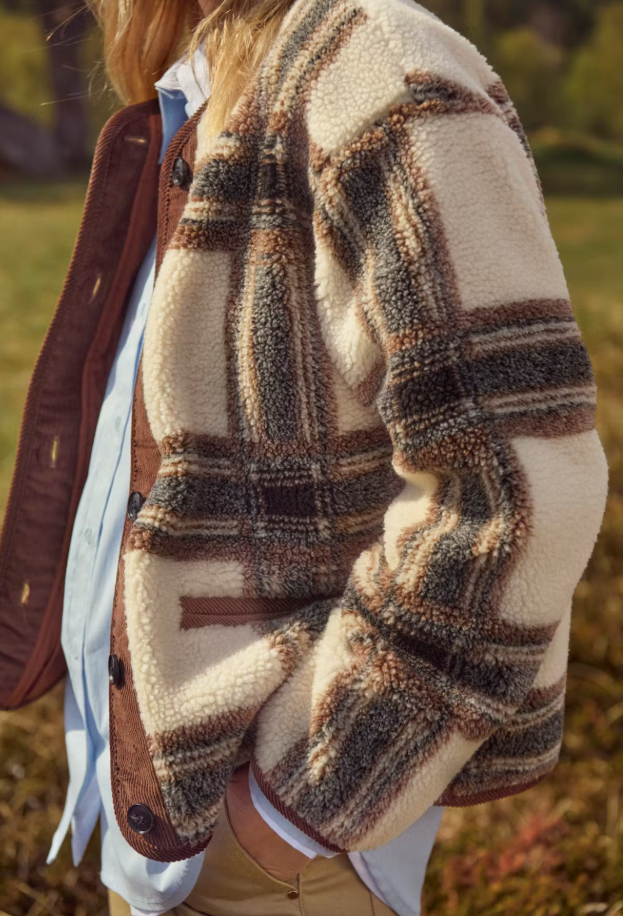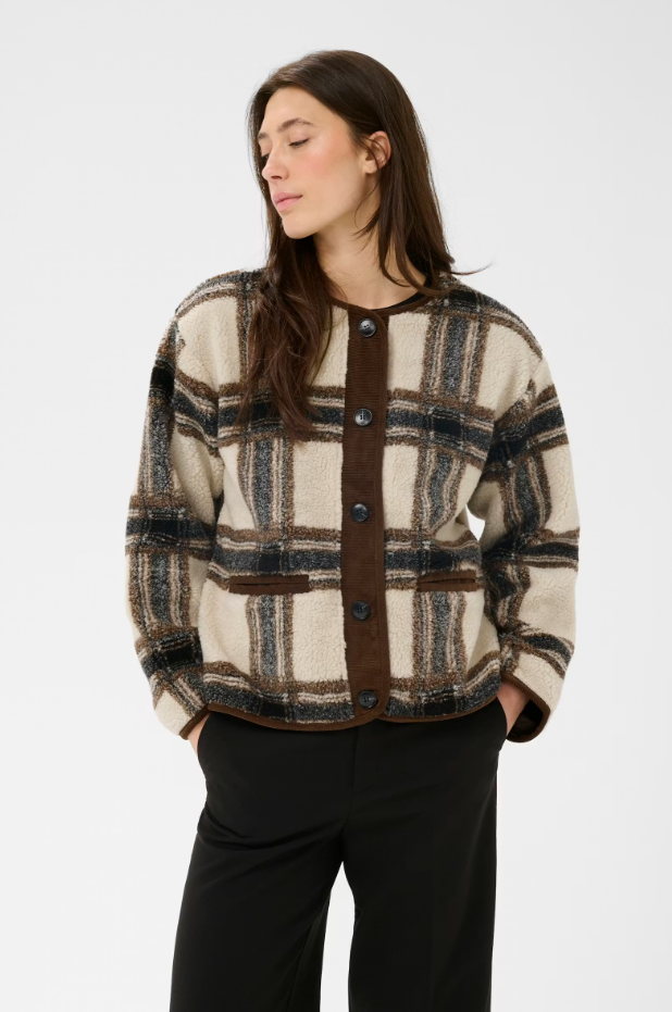This checked jacket in soft teddy quality perfectly combines warmth and style. The wide checks and contrasting corduroy details add character, while the relaxed fit makes it easy to style over shirts or knitwear. Perfect for chilly days with a casual feel.