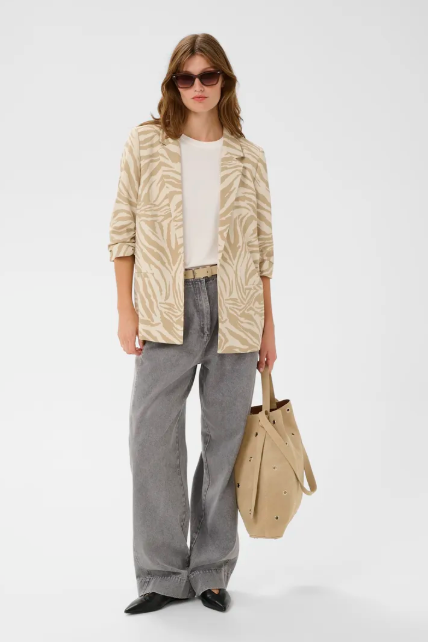 Soaked In Luxury Ladies SLShirley Printed Blazer In White Pepper Animal