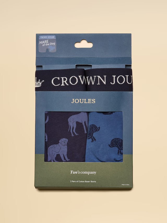 Joules Men’s Crown Joules Cotton Jersey Boxer Shorts 2Pk- Navy Blue Dog