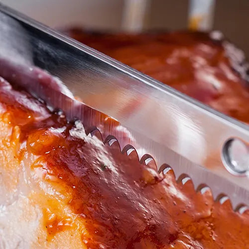 The serrated blades with easily carve through meat and will make light work of slicing bread.