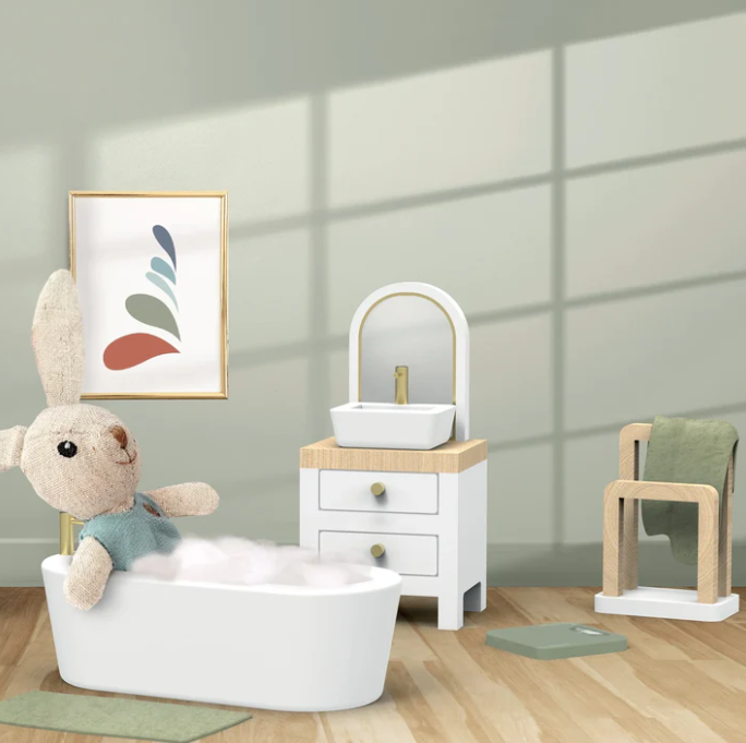 Enhance Imaginative Play with the Doll House Bathroom. Immerse your child in creative storytelling and role-playing scenarios with the Doll House Bathroom.