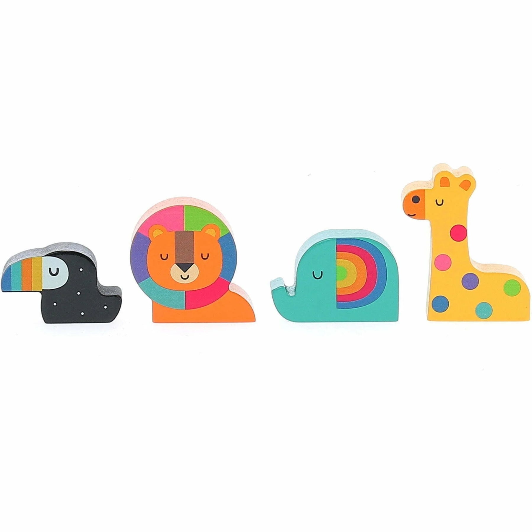 A colourful wooden train inspired by Andy Westface. The train has 4 cute animal passengers which are detachable so can be placed on different carriages or played with separately. This charming train offers more than just playtime fun; it also promotes early learning skills such as fine motor skills and hand-eye coordination. It is also great for imaginative play as your little one embarks on adventures with the adorable animal passengers.