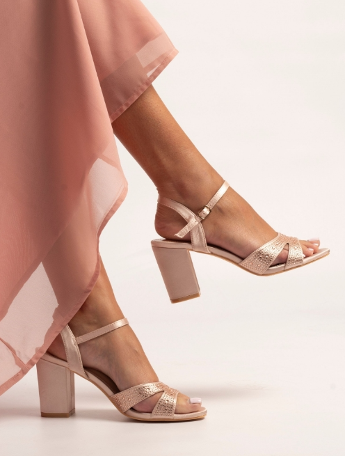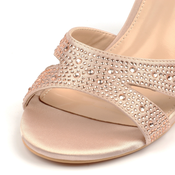 Demand attention wearing the Nina heel. Featuring sparkling straps and a sleek finish, this elegant shoe is lifted on a block heel for both glamour and stability. The adjustable ankle strap ensures a secure fit, making it perfect for evenings out, weddings, and special occasions where standout style is a must.