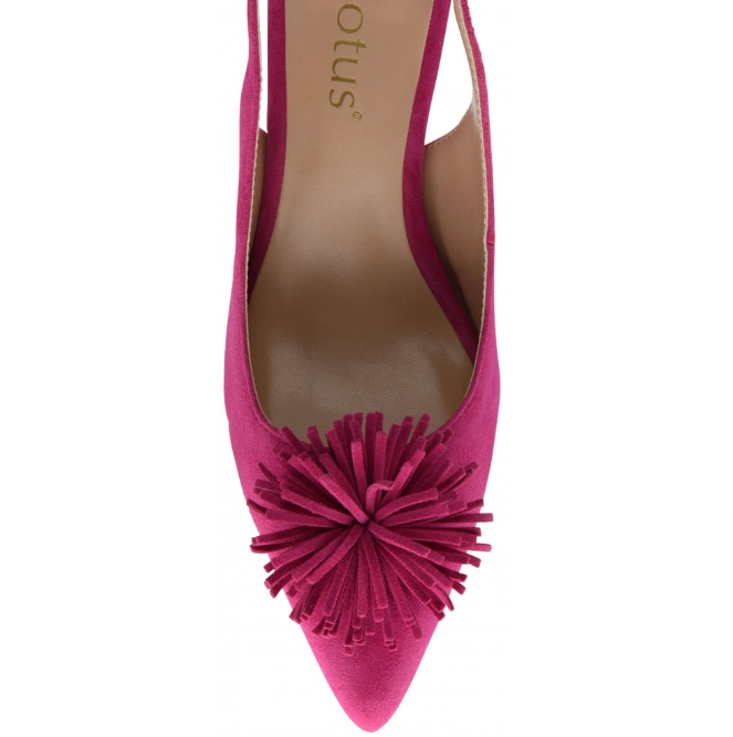 Introducing the Lotus women’s Caterina court shoe in an indulgent pink hue. Crafted from soft suede, this elegant slingback design is adorned with refined pom-pom detailing that gives this timeless silhouette a playful twist. Whether paired with skirts or trousers, Caterina is the ultimate finishing touch to any seasonal ensemble and perfect for stepping into summer with. Style Caterina with the matching Lotus Rose handbag for an extra pop of colour.