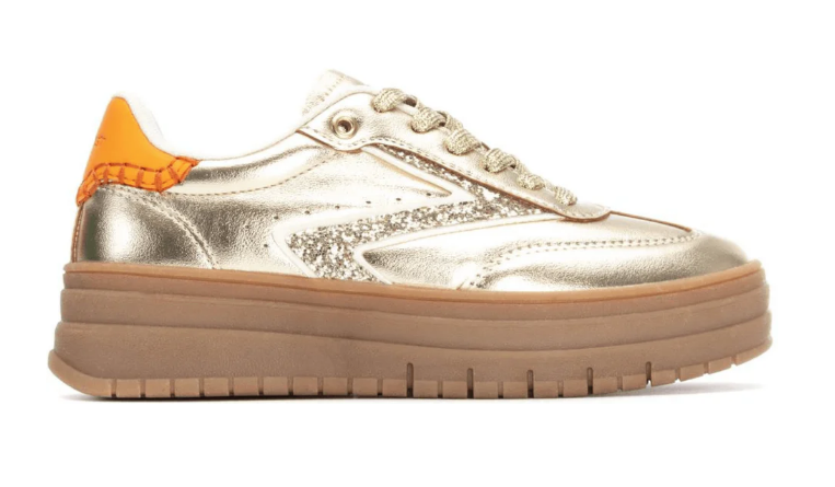 Teddy Smith gold ladies trainers with raised dark toned gum sole, perfect for those who like a little height. These light weight trend worthy trainers are the prefect addition this season.