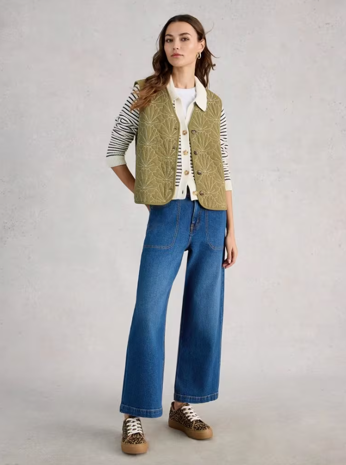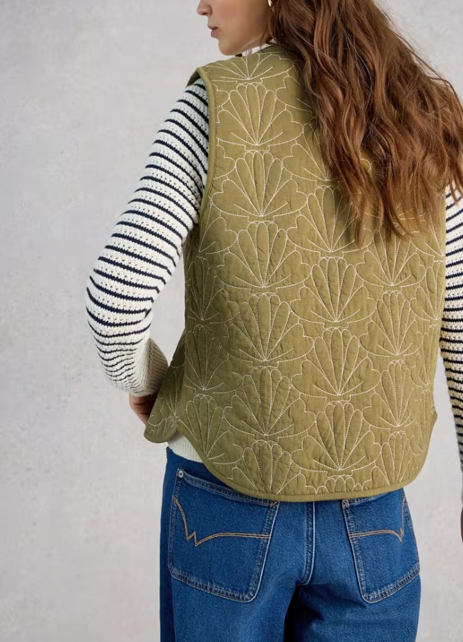 White Stuff Ladies Ayra Quilted Gilet in GREEN MULTI