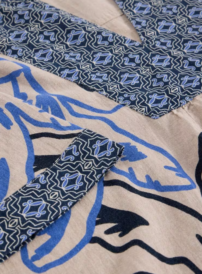 White Stuff Womens Ash Linen Blend Notch Neck Top in NATURAL MULTI