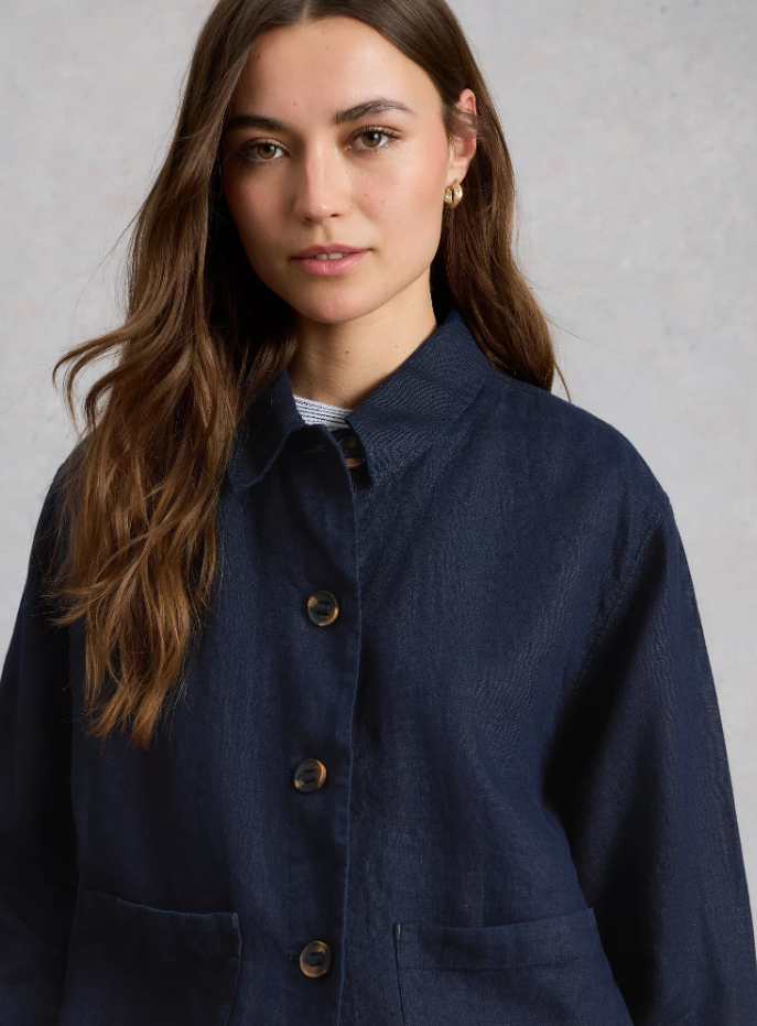 White Stuff Womens Isabel Linen Jacket in DARK NAVY
