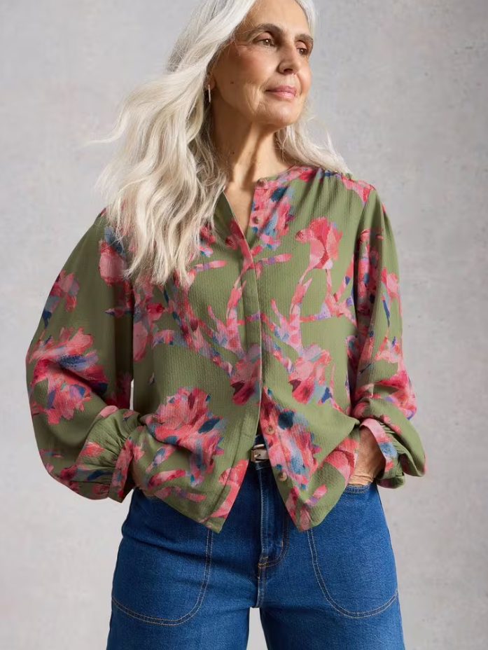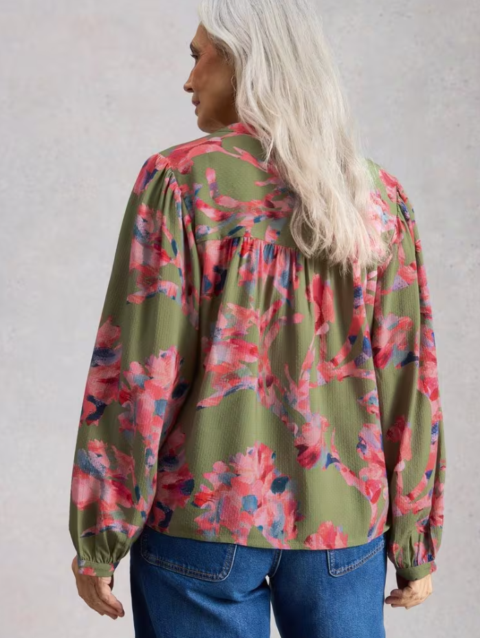 White Stuff Women's Lana V Neck Top in GREEN MULTI