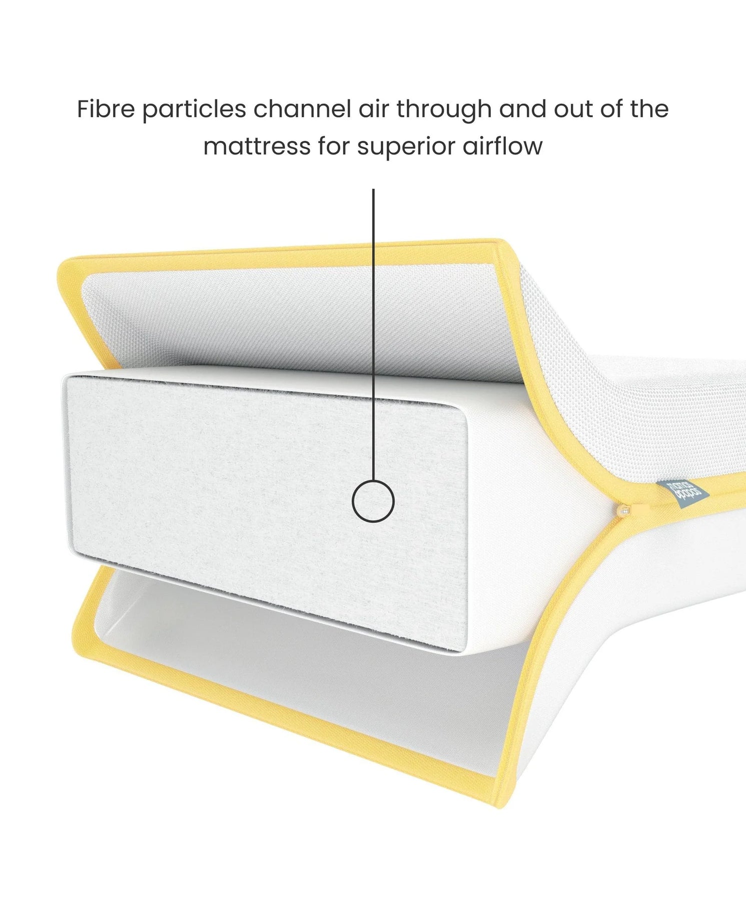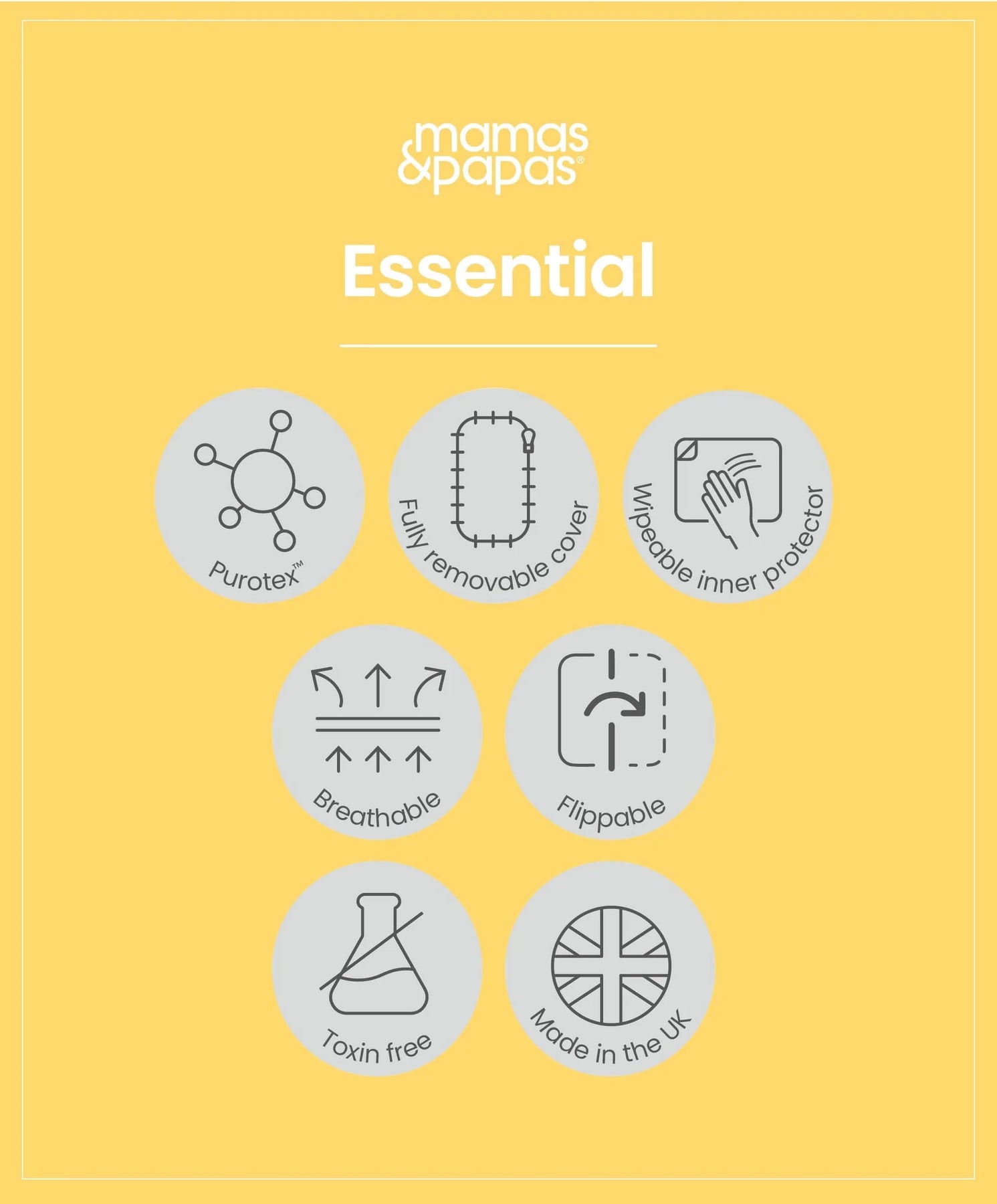 Essential, but far from basic. Because we set our bar higher than the average, our Essential range boasts quality features as standard. Our Essential Fibre cotbed mattress is quietly supportive for your little one. Designed to fit all our cotbeds measuring 140x70cm.