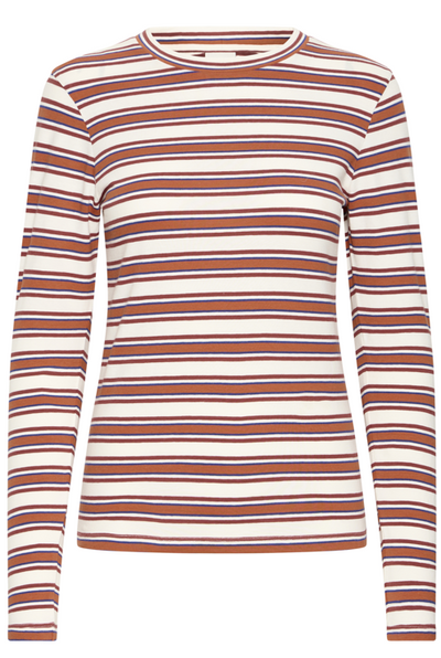 Ichi Ladies Long Sleeve T Shirt IHMira in Red Multi Stripe, Mira Tee