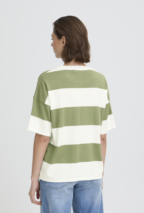 Ichi Ladies Loose SS Sweater IHLuls in Wide Iguana White Stripe, Luls
