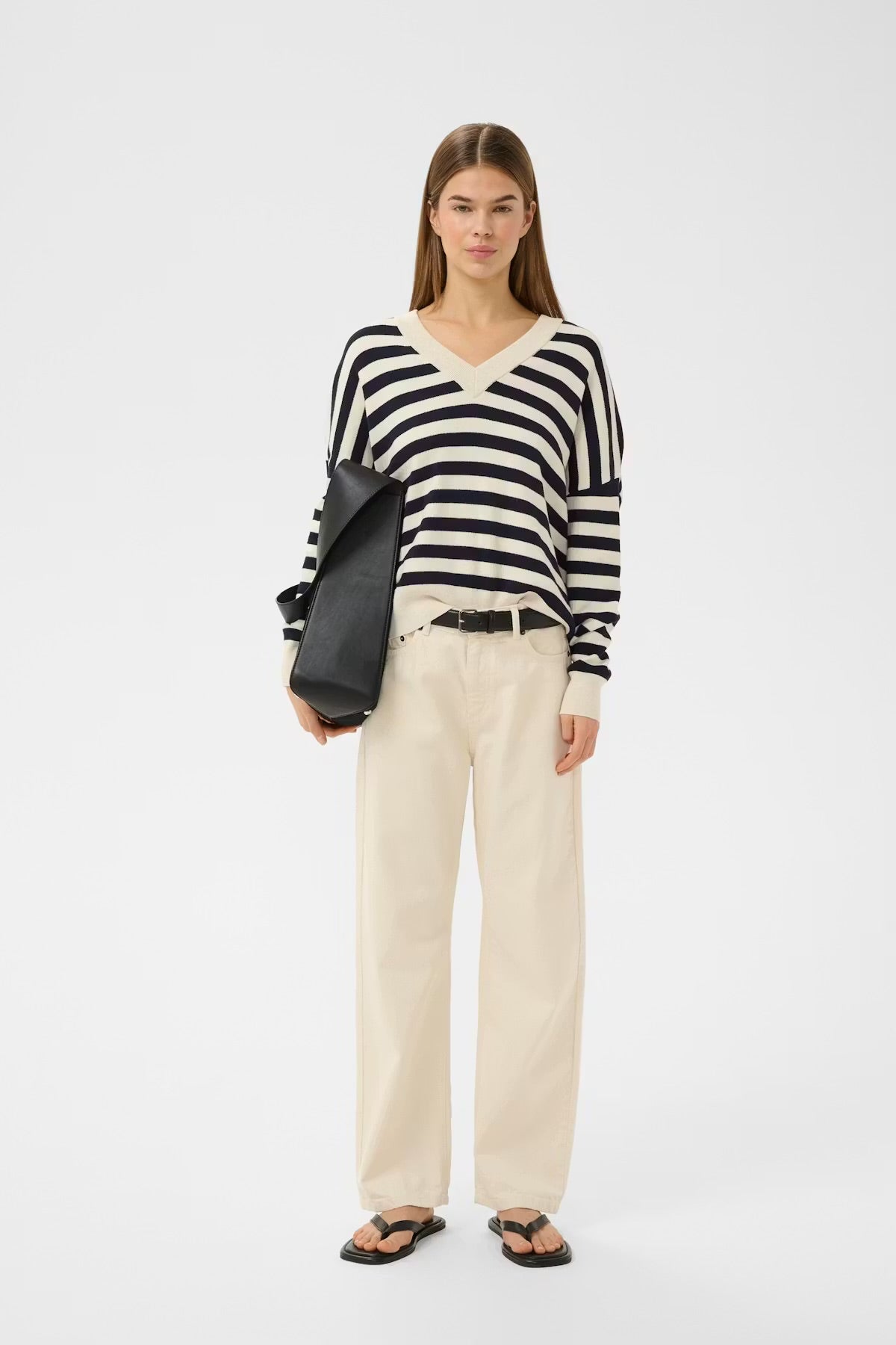 Inwear Women’s FosterIW V-Neck Pullover - Marine Whisper White Stripe