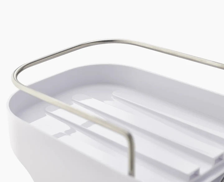 No more shampoos and shower gels fighting for space in a crowded shower tray. Our compact, slimline shower shelf keeps all your essentials in one neat, tidy and easy-reach place. There’s a self-draining top shelf with a stainless-steel rail for soap bars and small bottles, and angled pockets that are ideal for storing larger shampoo bottles and shower gels. Two hanging hooks at the end provide storage for razors and sponges. Capsule™ securely attaches to smooth tiles or glass thanks to its powerful, super-grip suction cups.