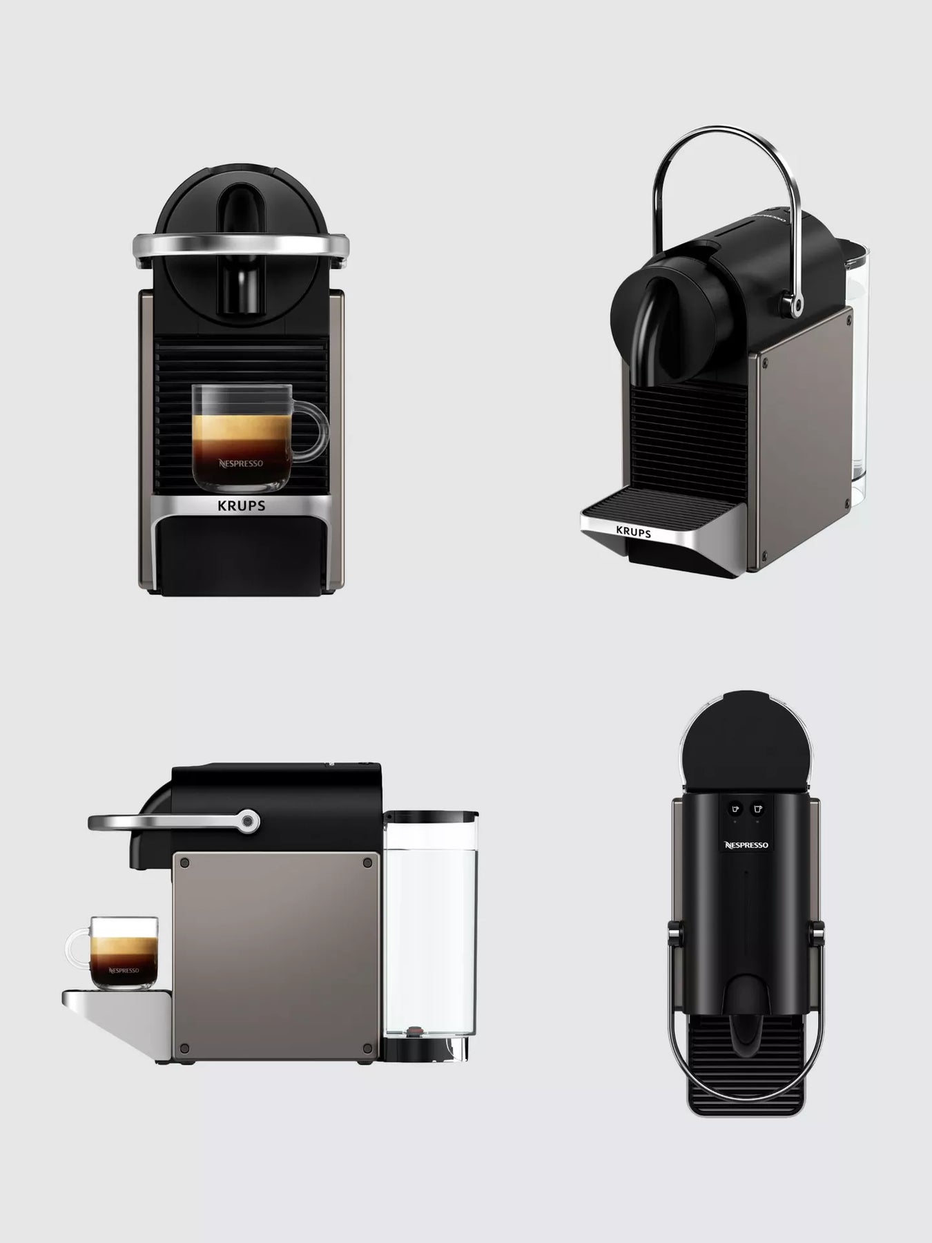 Experience barista-style coffee at home with the compact and stylish Nespresso Pixie Redesign by KRUPS. Designed with hammered metal sides and a sleek titanium finish, this machine delivers premium espresso in a convenient and energy-efficient way.