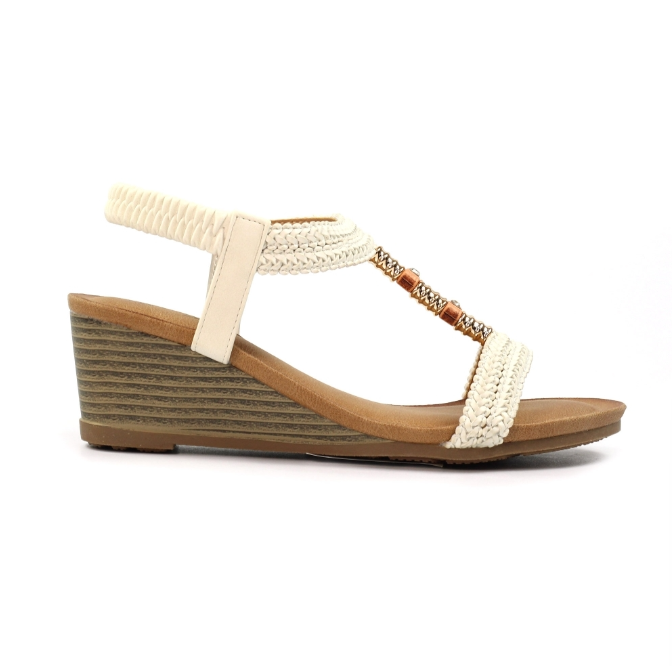 Lunar Ladies Sandals JLH535  Florence White Wedge Sandal