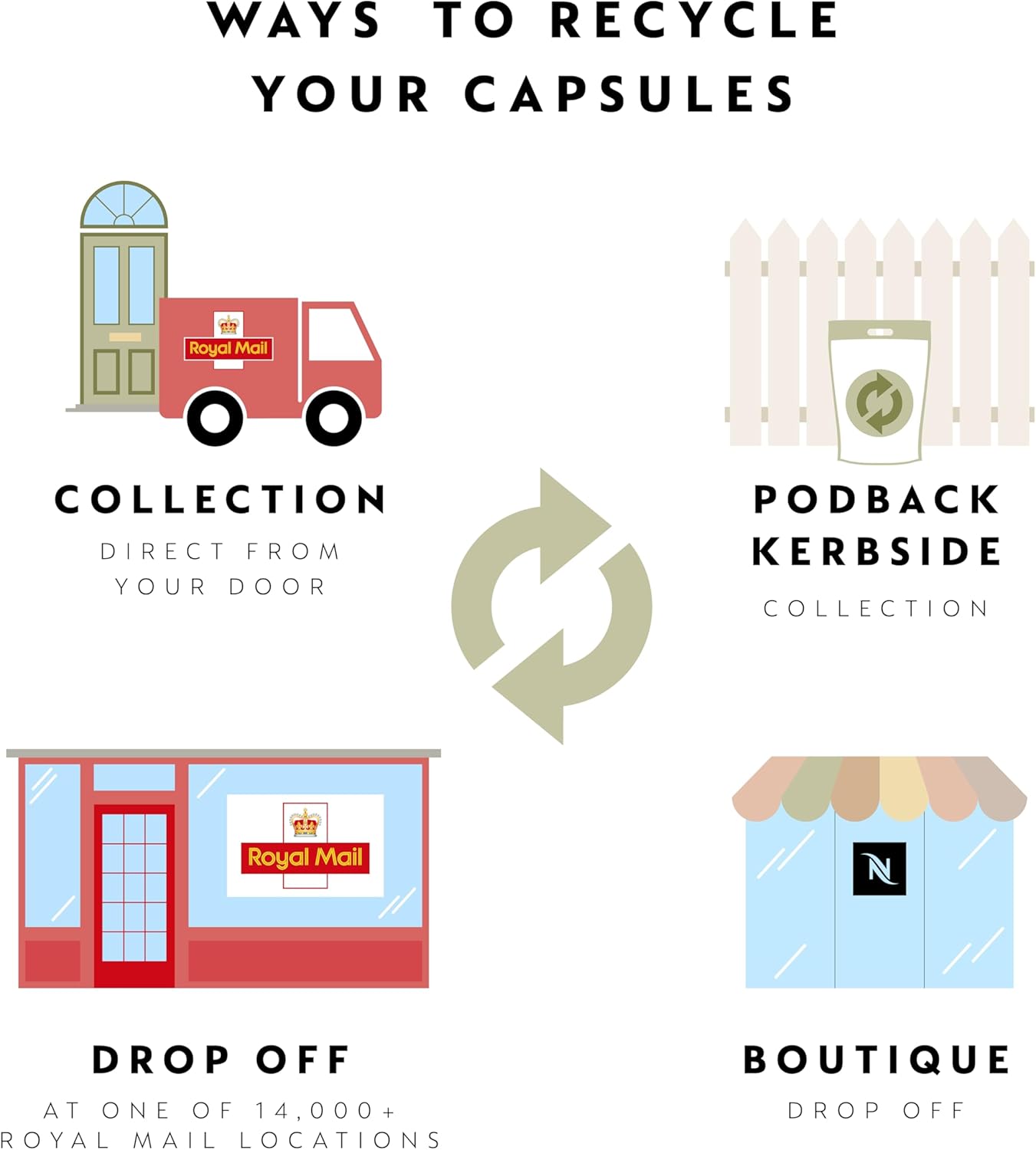 Made from 35% recycled plastic. Nespresso Vertuo pods are made with 85% recycled aluminium and Nespresso's free programme makes recycling your used capsules easy and convenient.