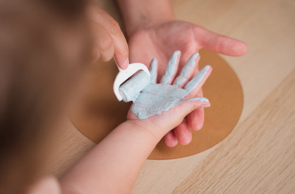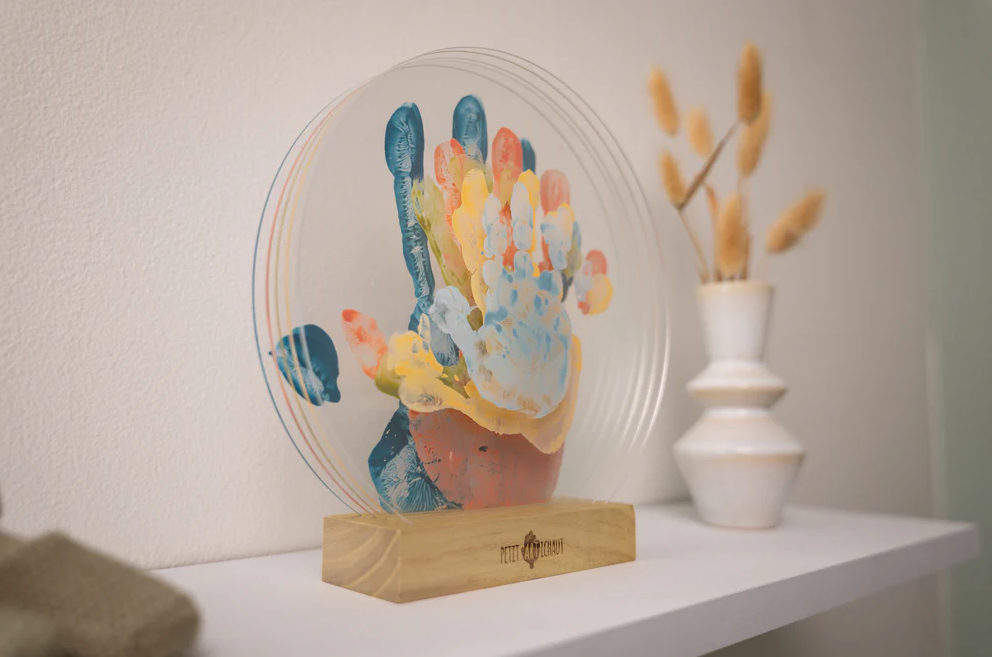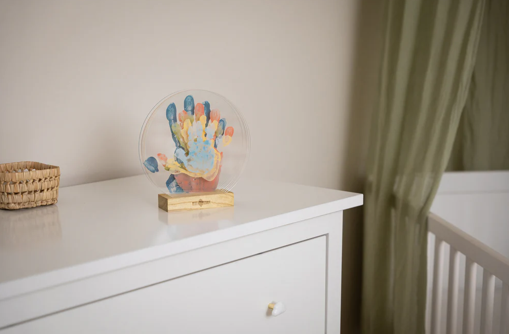 The Family Colors is a layered transparent frame that displays the imprints of 5 family members to create a truly unique piece of art.