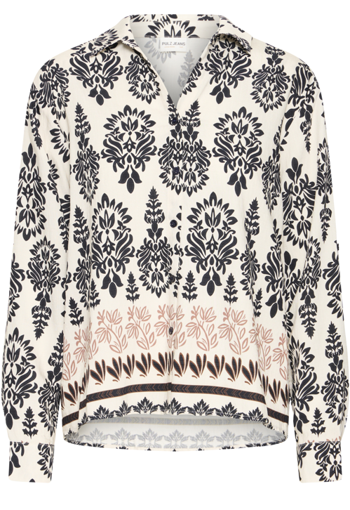 Pulz Ladies Shirt PZAyla in Black Boho Creme Print, Ayla Top