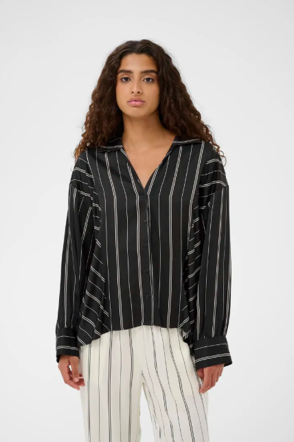 Soaked In Luxury Ladies SLMarcela Shirt In Black With White Stripes
