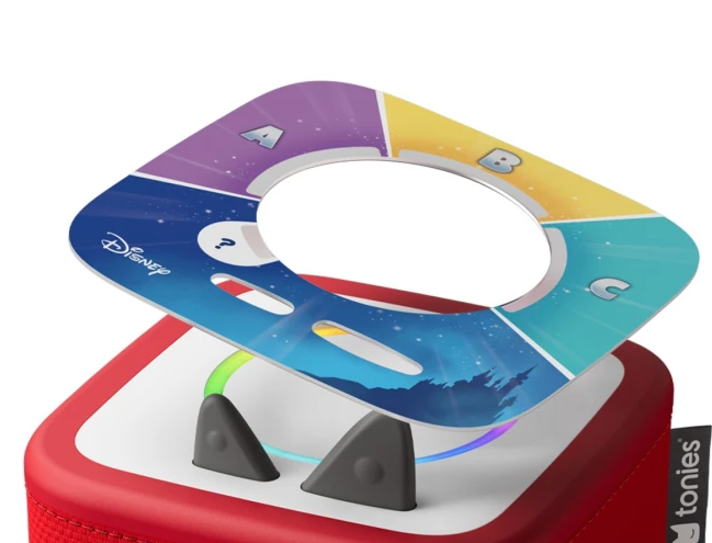 2. Pop the Tonieplay Disc on top of the Toniebox 2 and squeeze an ear.