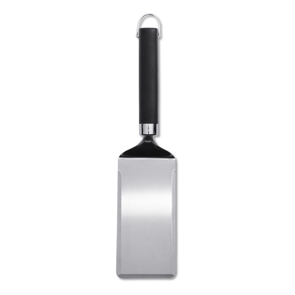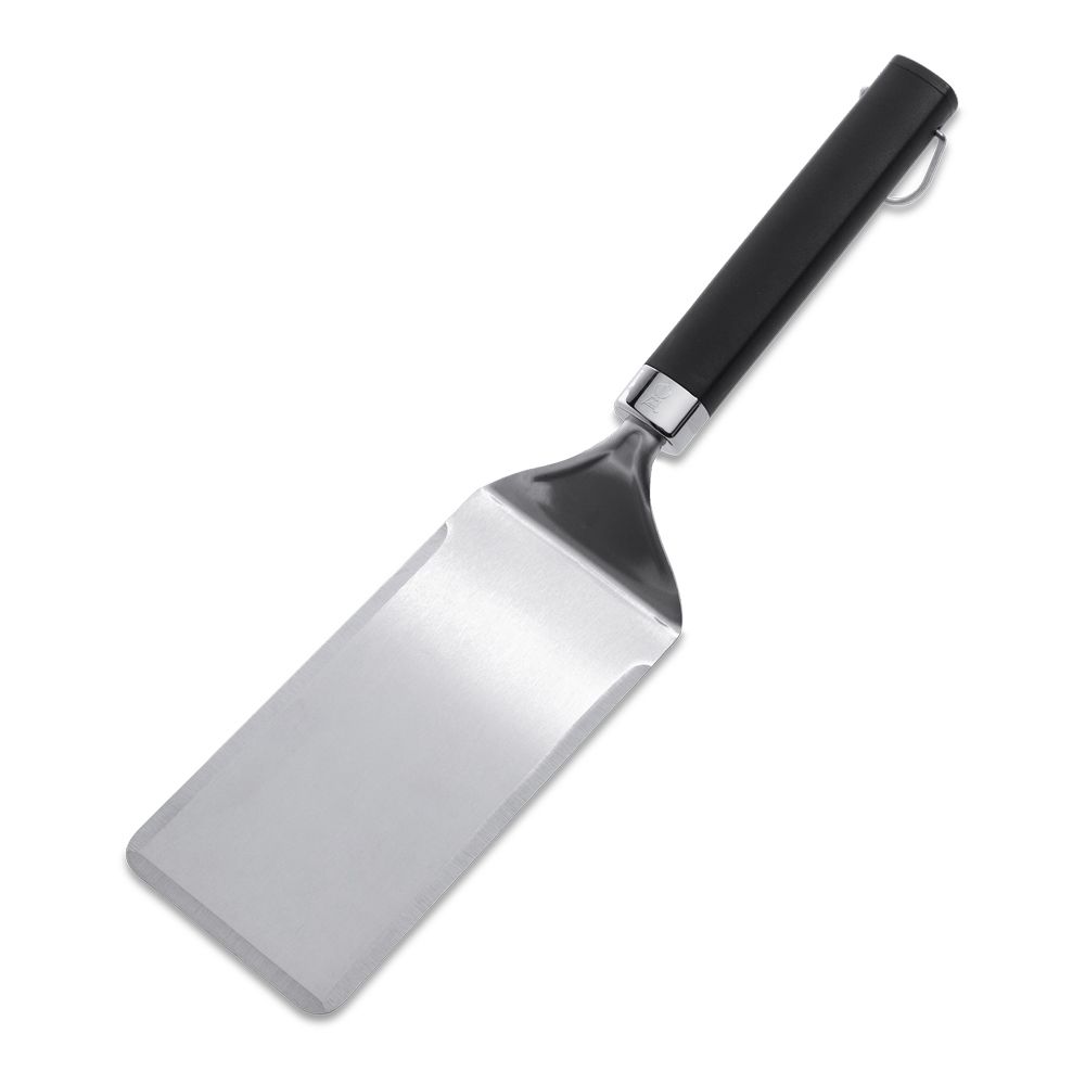 - This spatula features a bevelled edge and non-slip handle for amazing control when flipping burgers, tossing veg, and scraping up all that good stuff on your Weber BBQ. Made for Weber griddles and flat tops, but is a great addition for any set up/
