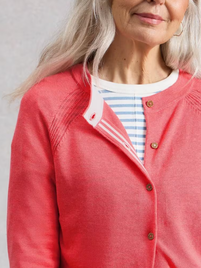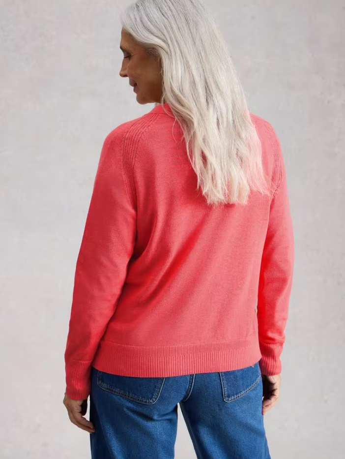 White Stuff Women's LULU CREW NECK LONG SLEEVE CARDIGAN in BRIGHT PINK