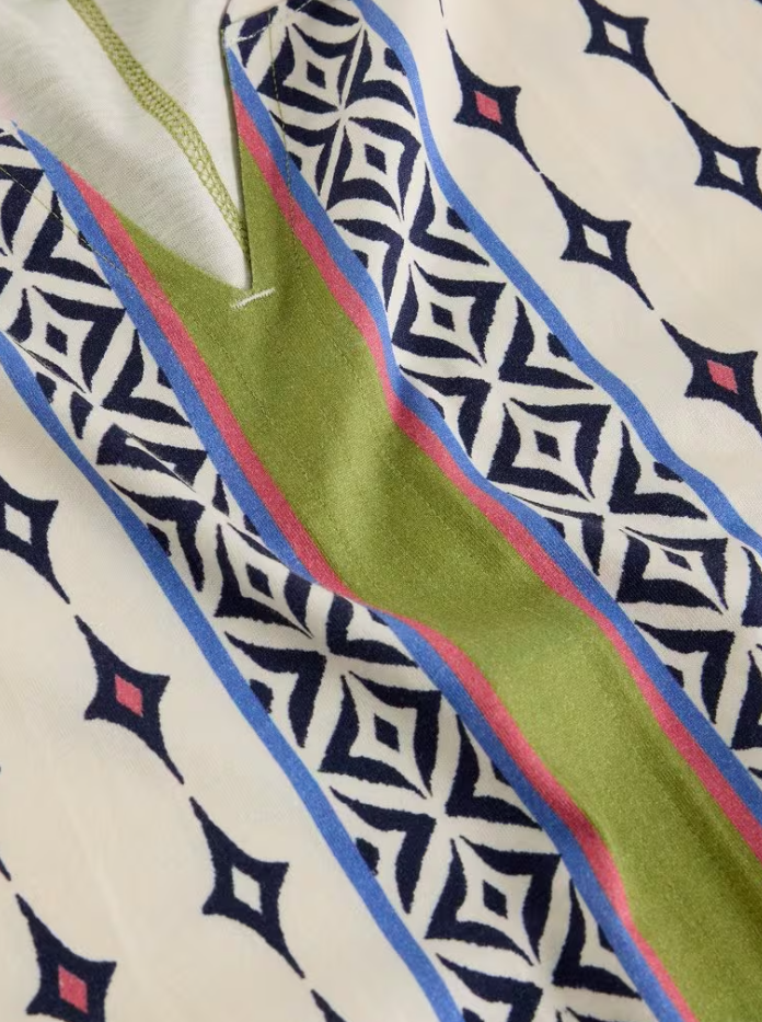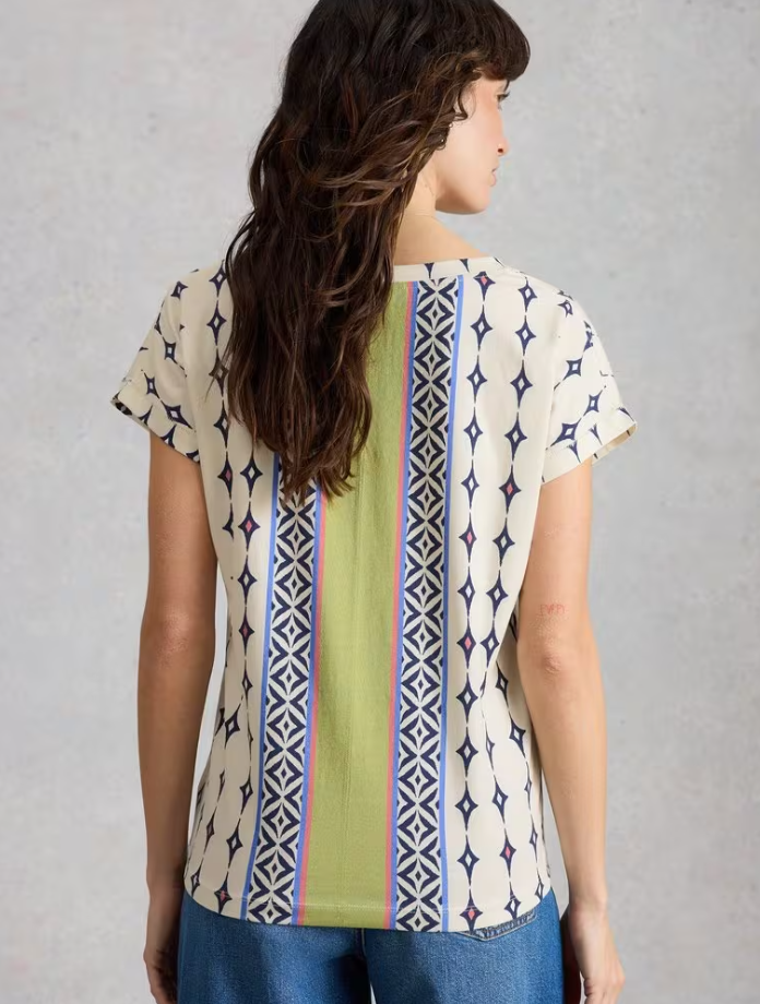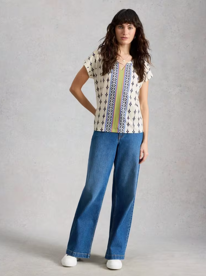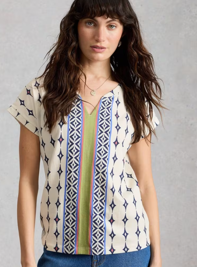 White Stuff Women's NELLY NOTCH NECK SHORT SLEEVE T-SHIRT in WHITE MULTI