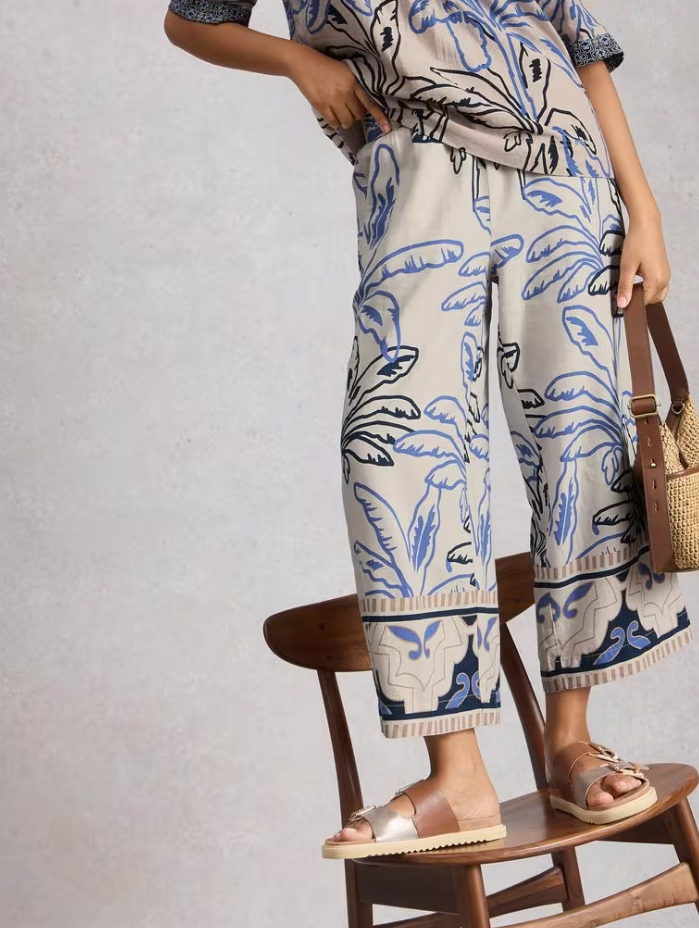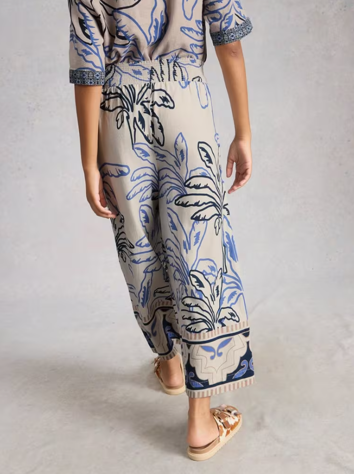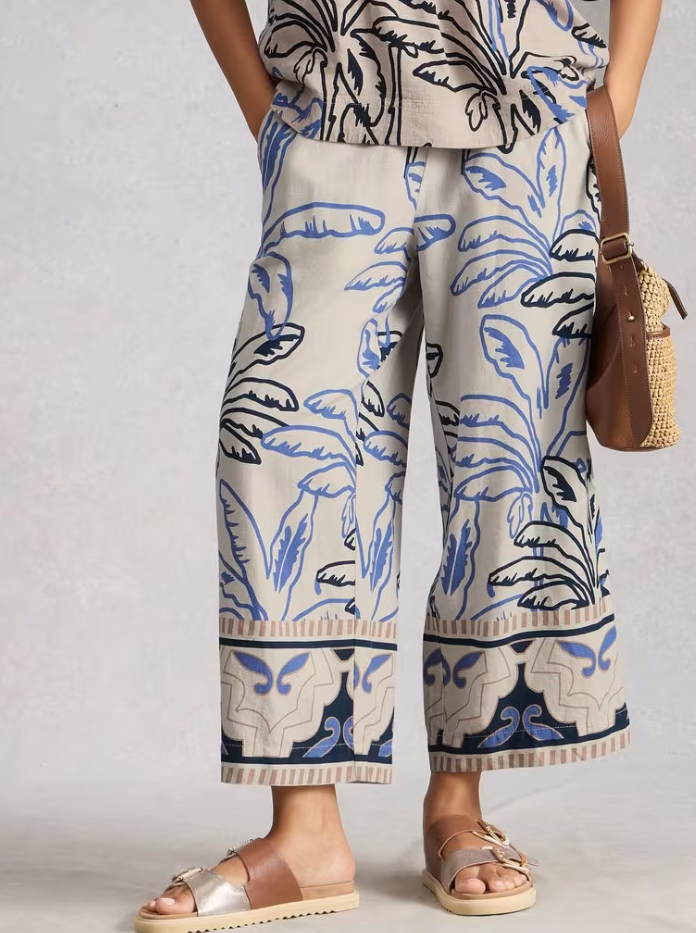 White Stuff Women's Shelly Linen Crop Blend Culotte in IVORY PRINT