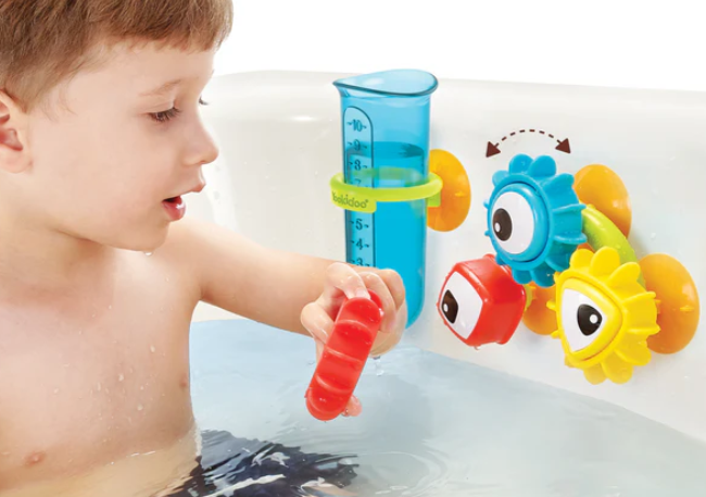 From colorful spinning machine gears in various shapes to a numbered test tube with holder, this set has everything your soon-to-be STEM-lover needs to get experimental in the bathtub.