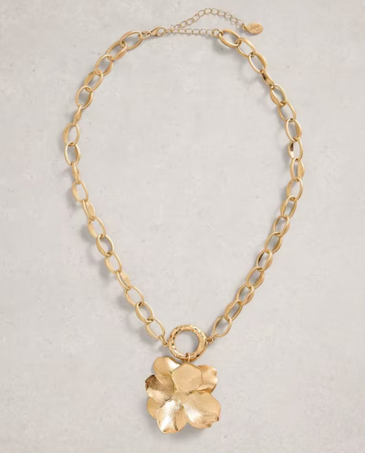 White Stuff Belle Floral Necklace in GOLD TONE METALLIC