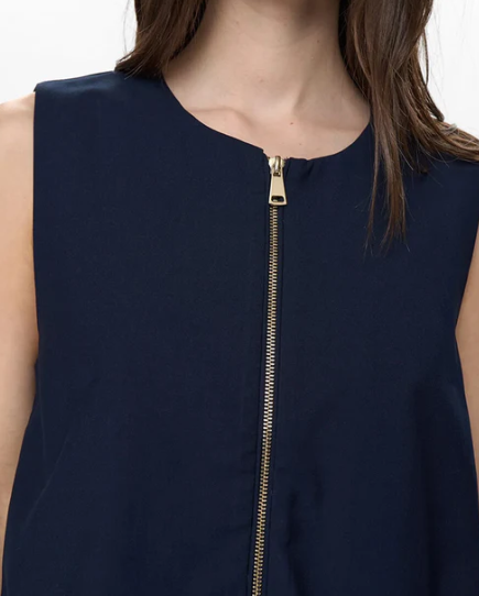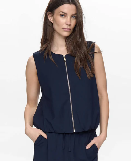 Introduce contemporary, relaxed tailoring to your wardrobe with the NuJulia Vest by Numph. Crafted from a light-weight fabric and fully lined with a beautiful hand-illustrated print, the oversized boxy fit and gathered hem make this an elevated, modern piece. Designed with a round neck and zip-front fastening, wear it to the office layered over a roll-neck or crisp white shirt, with tailored trousers or skirt and loafers. With its clean lines and elegant zip-front detail, it offers a refined silhouette that works beautifully on its own or layered over a tee or blouse. A versatile piece that transitions effortlessly from day to evening.