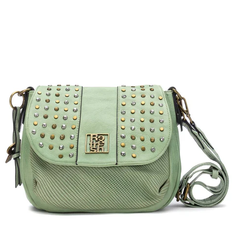 Women's crossbody bag from Refresh, made of synthetic material that imitates leather. It features a flap with a button closure for added convenience and security. A practical and versatile accessory, perfect for everyday use. Dimensions: 24 x 27 x 10 cm. This model has received vegan certification from PETA (Animal Rights Organization).