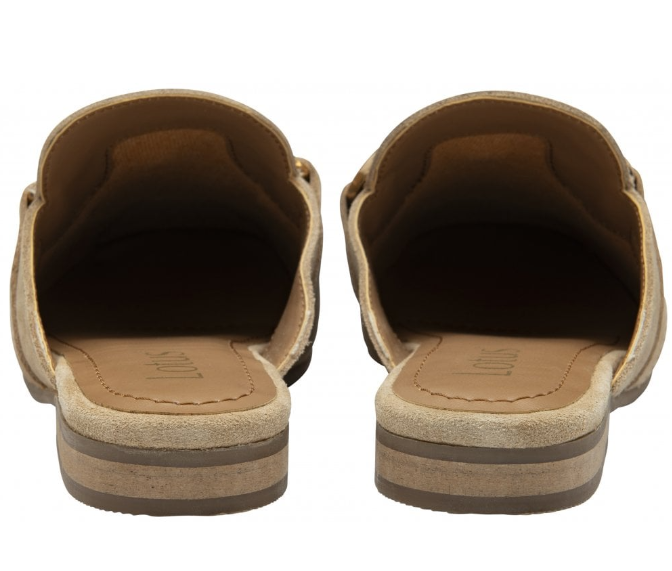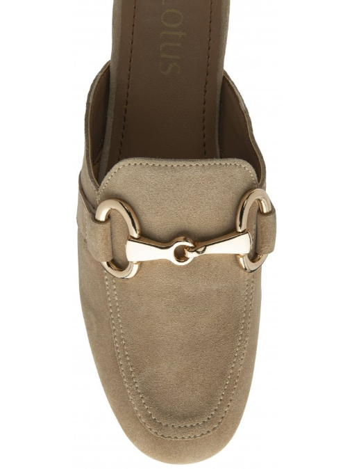 Exquisitely crafted from premium suede, the Lotus Taylor backless loafer is a chic and contemporary style that presents endless opportunities for wear. This women’s natural slip-on shoe boasts a polished metal snaffle on the vamp and an exceptionally wearable 2.5cm stacked heel. Finished with an almond pointed toe, these ladies’ beige suede shoes epitomise style and sophistication.