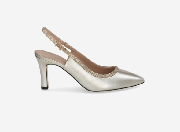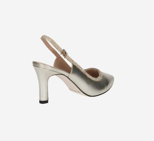 Discover pure elegance with these sling-back pumps from PETER KAISER. This model combines timeless sophistication with festive glamor and is the perfect choice for special occasions. The elegant gold harmonizes stylishly with the narrow strap, which sparkles seductively with its all-over micro-glitter stones and gives your look that certain something.