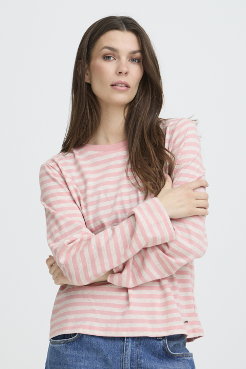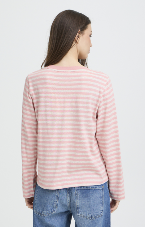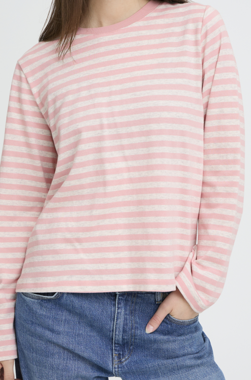 Pulz Ladies Long sleeve T Shirt PZArlo in Pink Grey Stripe, Arlo Tee