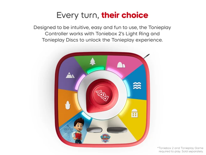 The Tonieplay Controller works with the Tonieplay Games, turning Toniebox 2 into a safe and screen-free audio gaming experience. Designed to be intuitive, easy and fun to use, the Tonieplay Controller works with Toniebox 2’s Light Ring and Tonieplay Discs to unlock the Tonieplay experience.