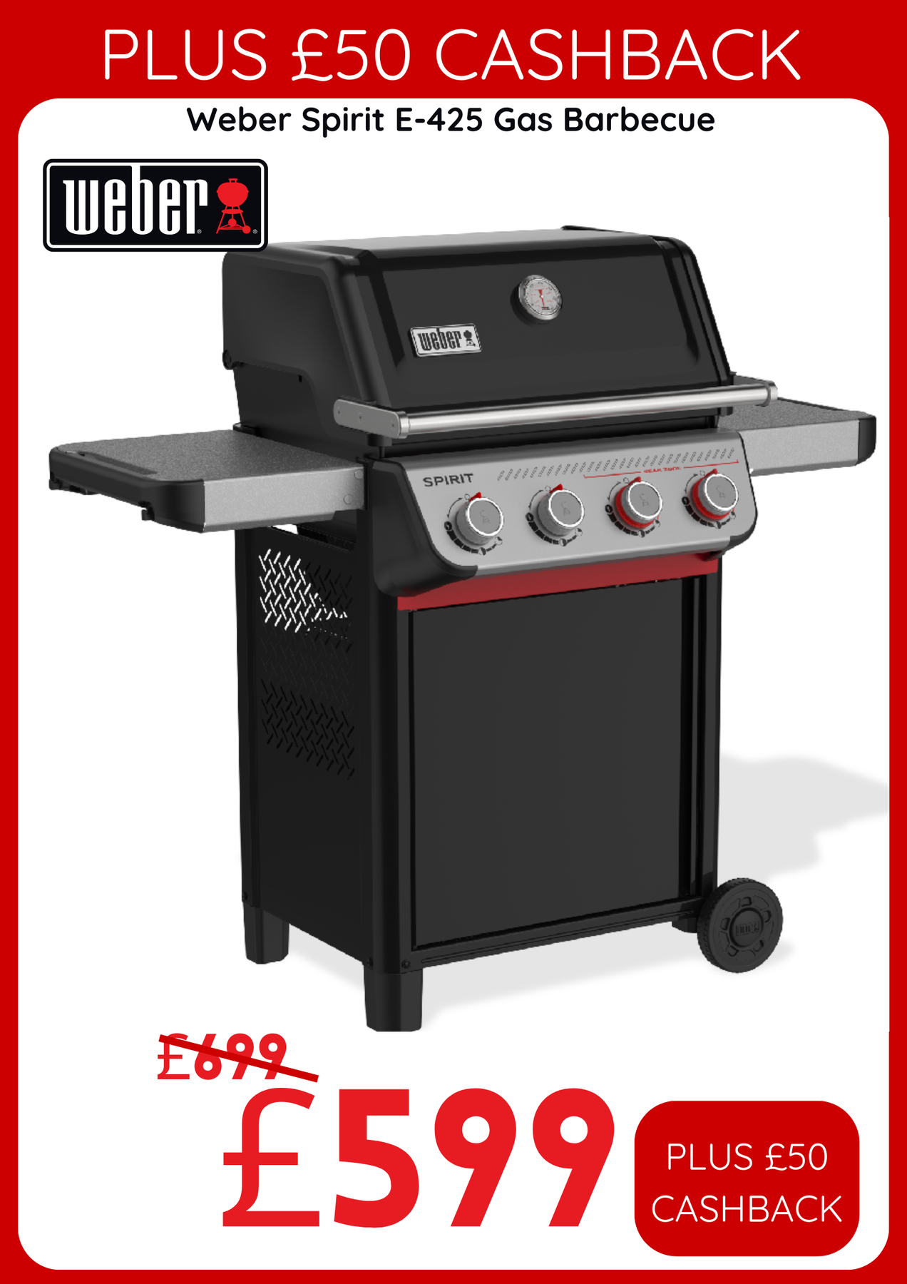 Barbecue food that tastes better than ever on the reinvented 4-burner Spirit® E-425 Gas Barbecue with Sear Zone. Create bold, flavourful sear marks on meat, fish, and vegetables with two Boost burners that unleash 40% more power in the Sear Zone. Ignite each individual burner easily with one hand with Snap-Jet ignition and control the heat precisely with a full range of temperatures from high to low and everything in between. Make the most of your space by adding a variety of Weber Works snap-on accessories (sold separately) to the side rails. Turn your barbecue into a Dutch oven, poultry roaster, and more with the included Weber Crafted® cooking grates that hold Gourmet BBQ System custom-fit grillware (sold separately). Keep platters, seasonings, and tools within reach with hammertone metal side tables that conveniently fold down to fit smaller spaces.